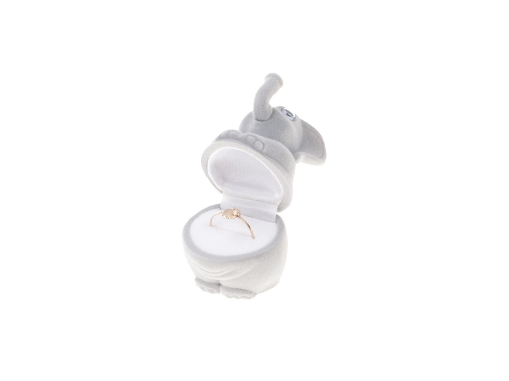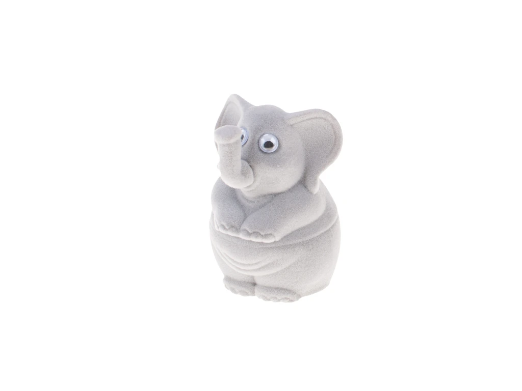 - Atypická sametová dárková krabička ve tvaru slona s bílým saténem uvnitř víčka.