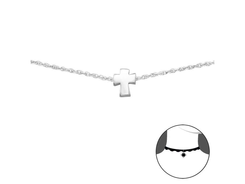 STŘÍBRNÝ CHOKER NÁHRDELNÍK KŘÍŽEK