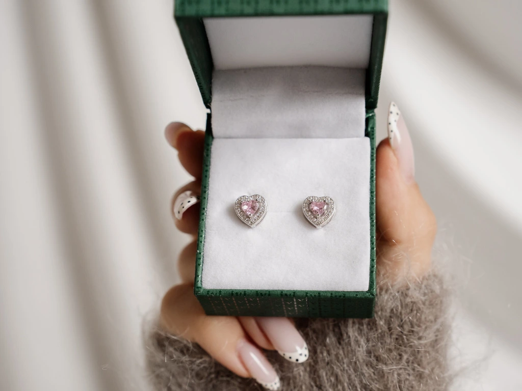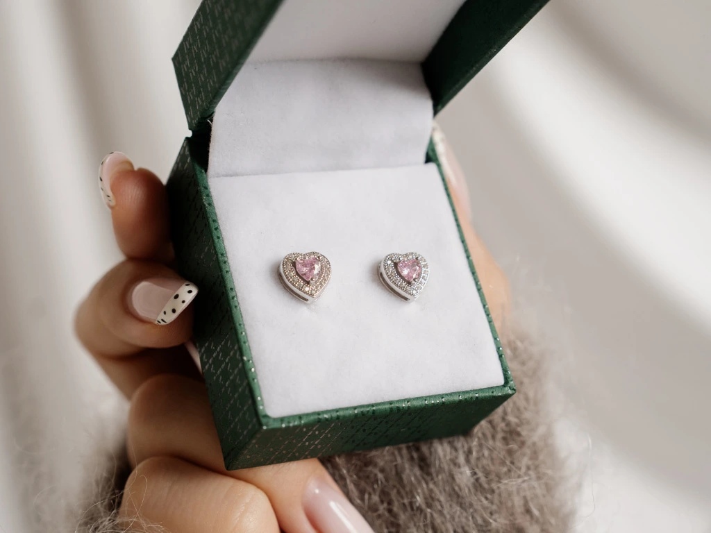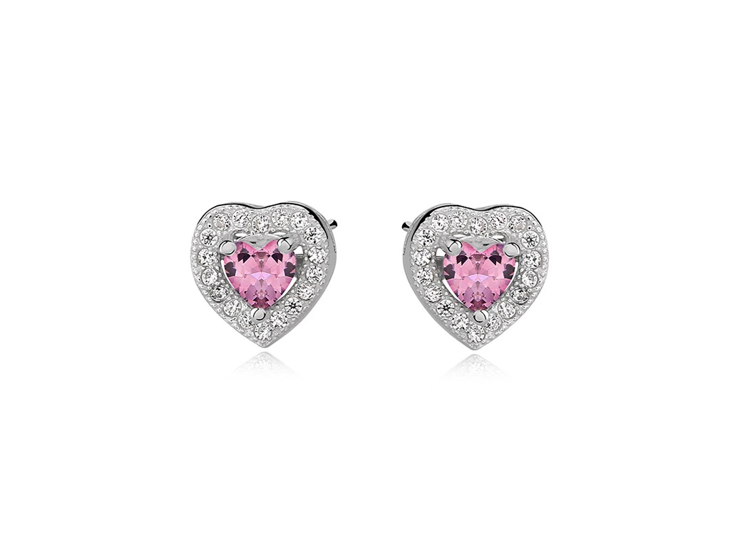 Něžné náušnice s růžovým zirkonovým srdíčkem.