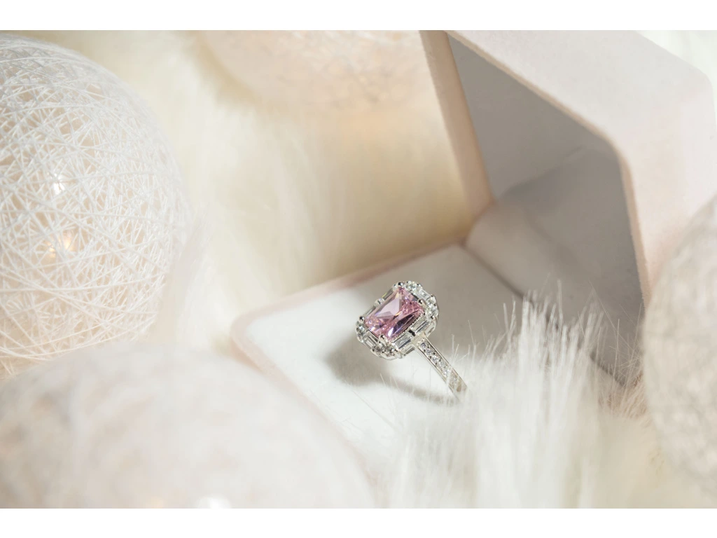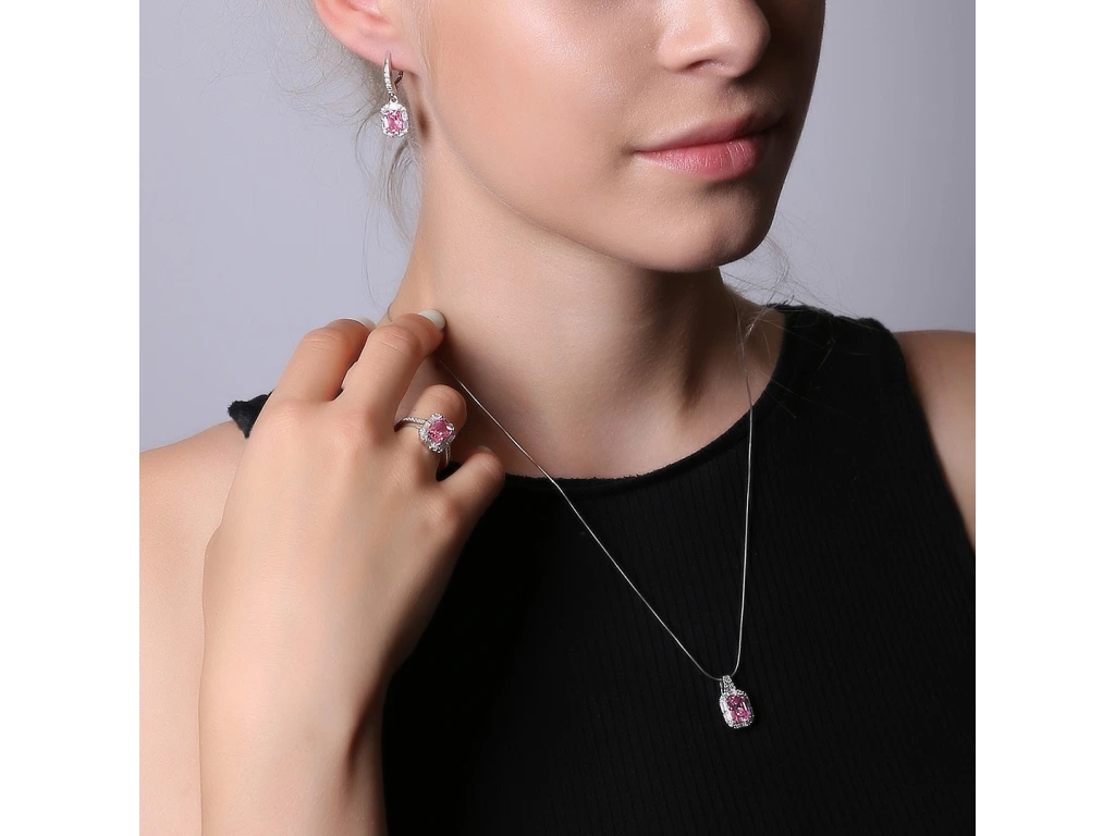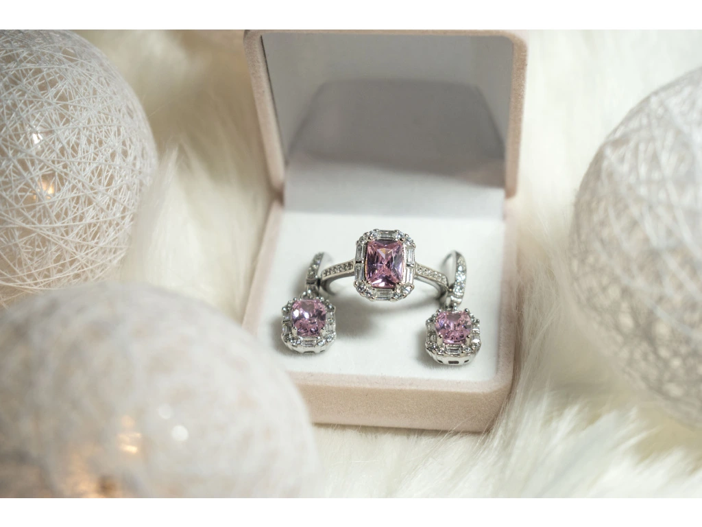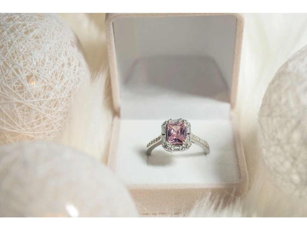 Růžový zirkon jako hlavní kámen.