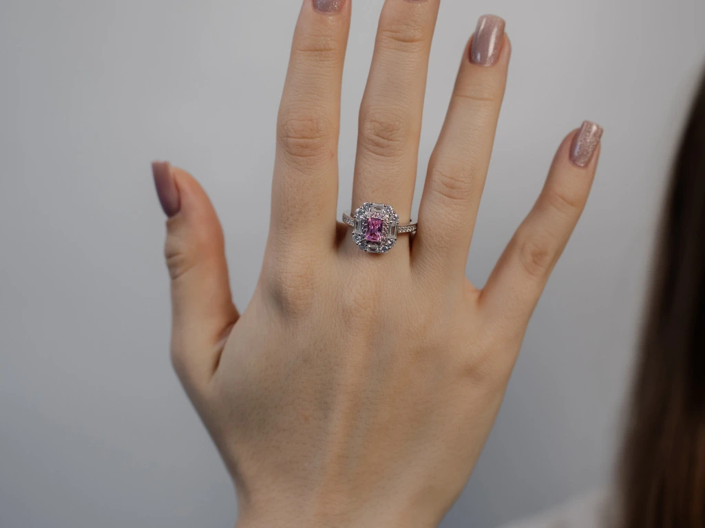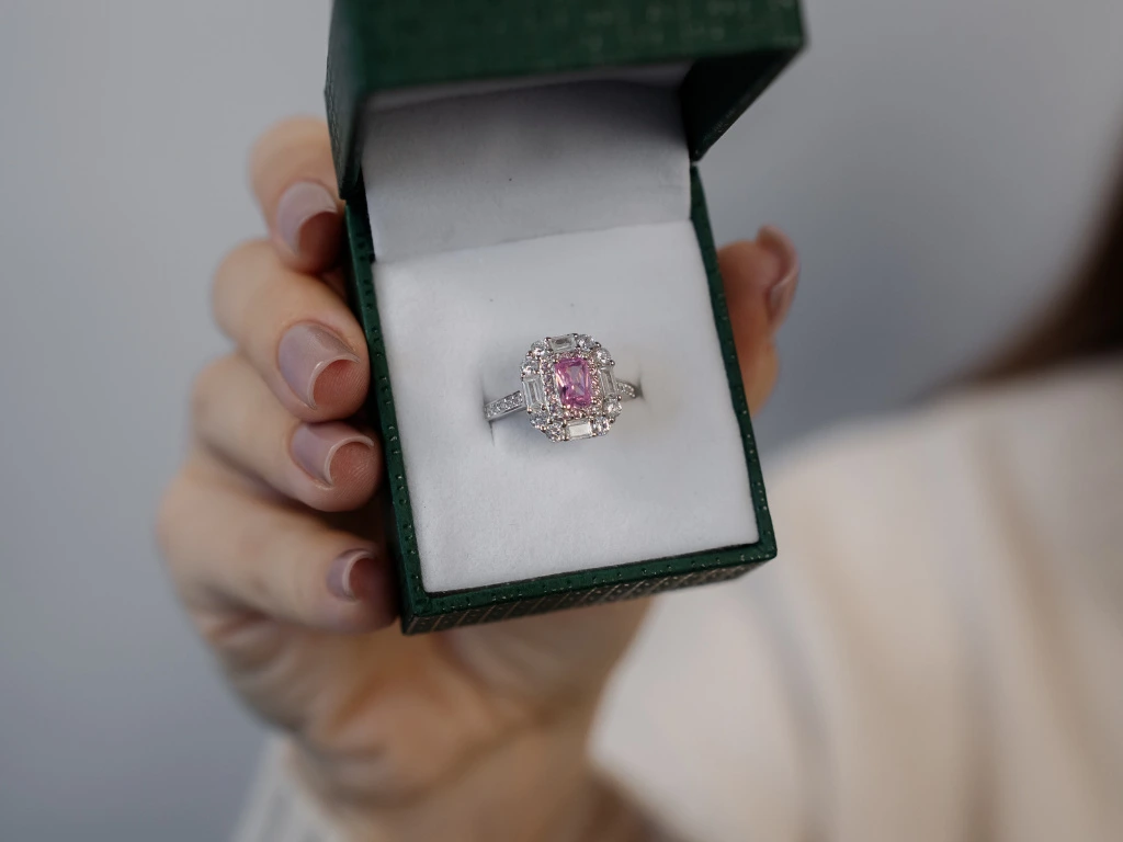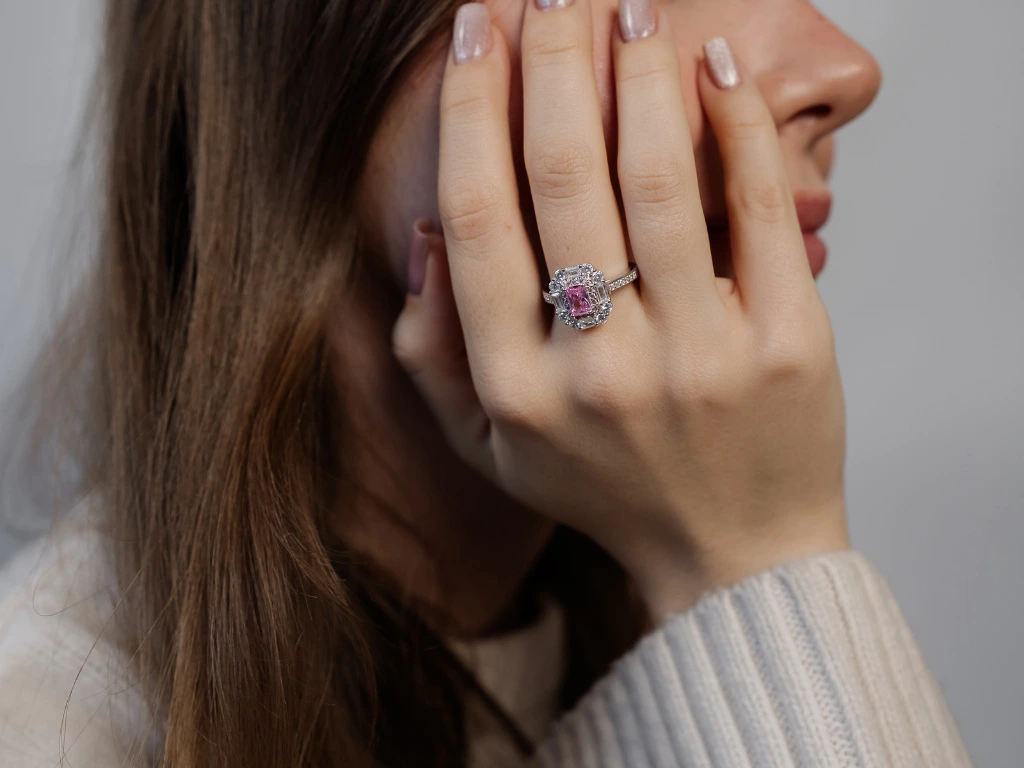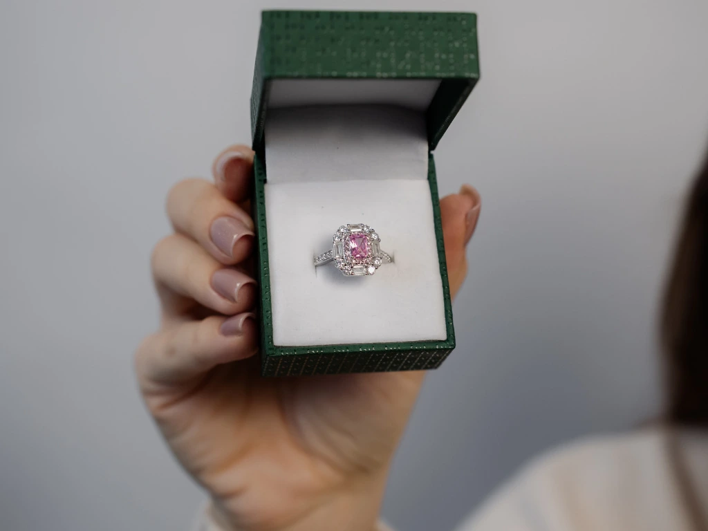 Růžový zirkon jako hlavní kámen.