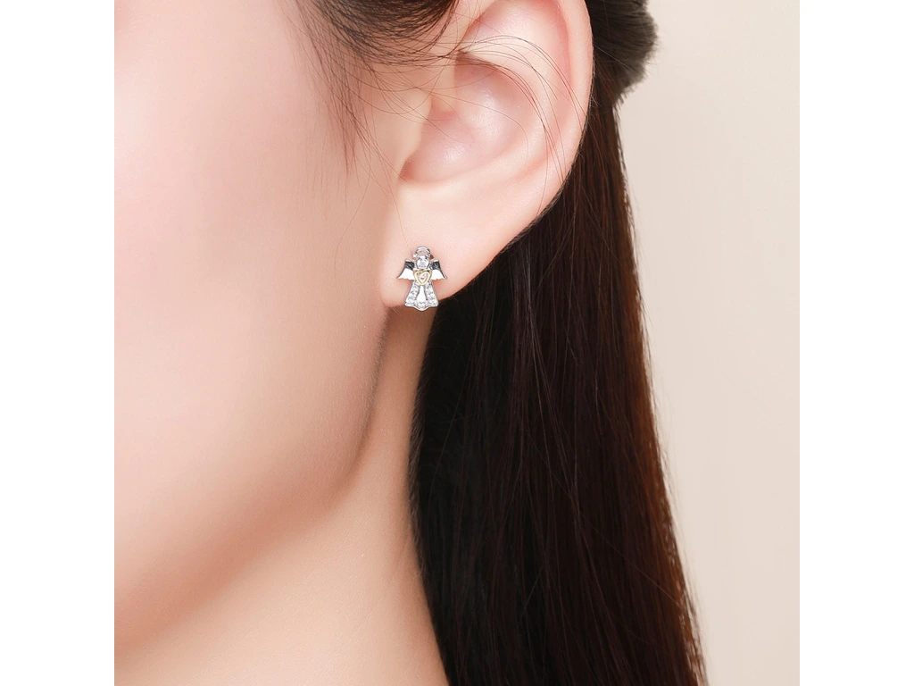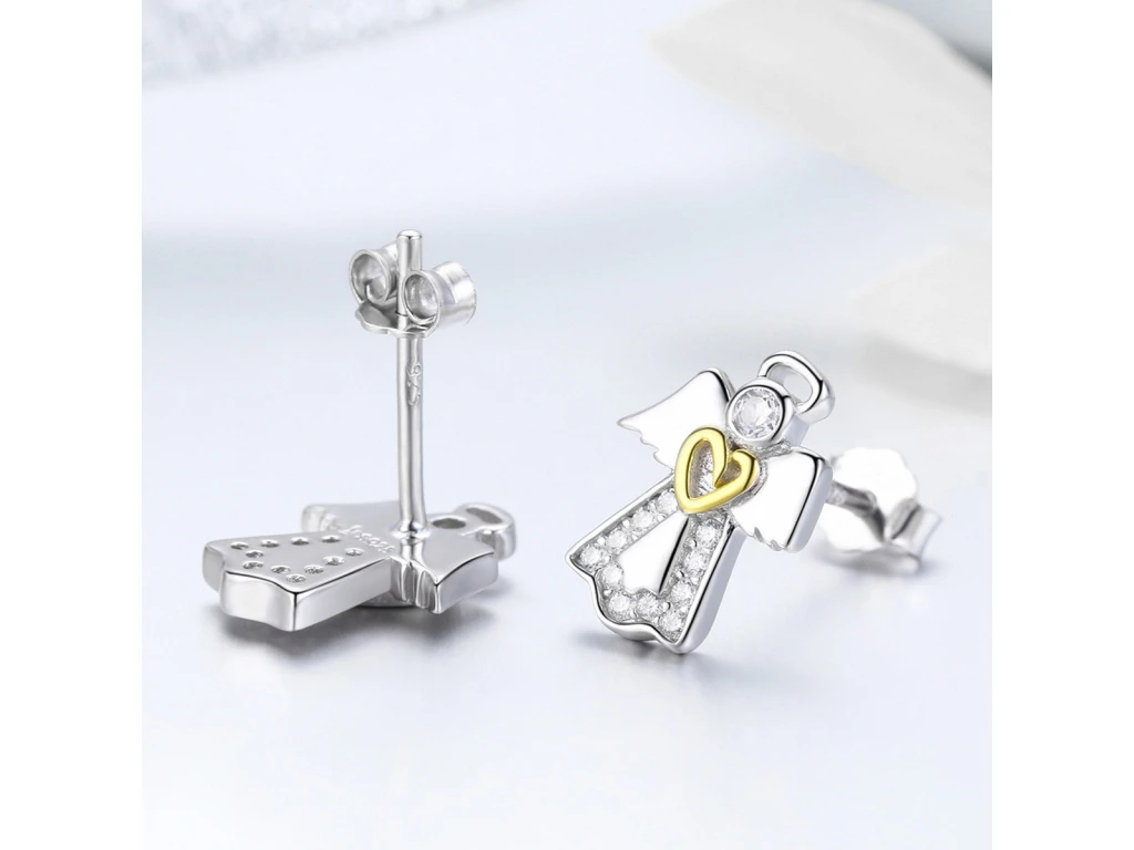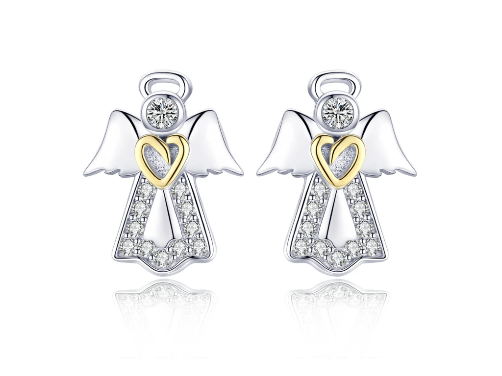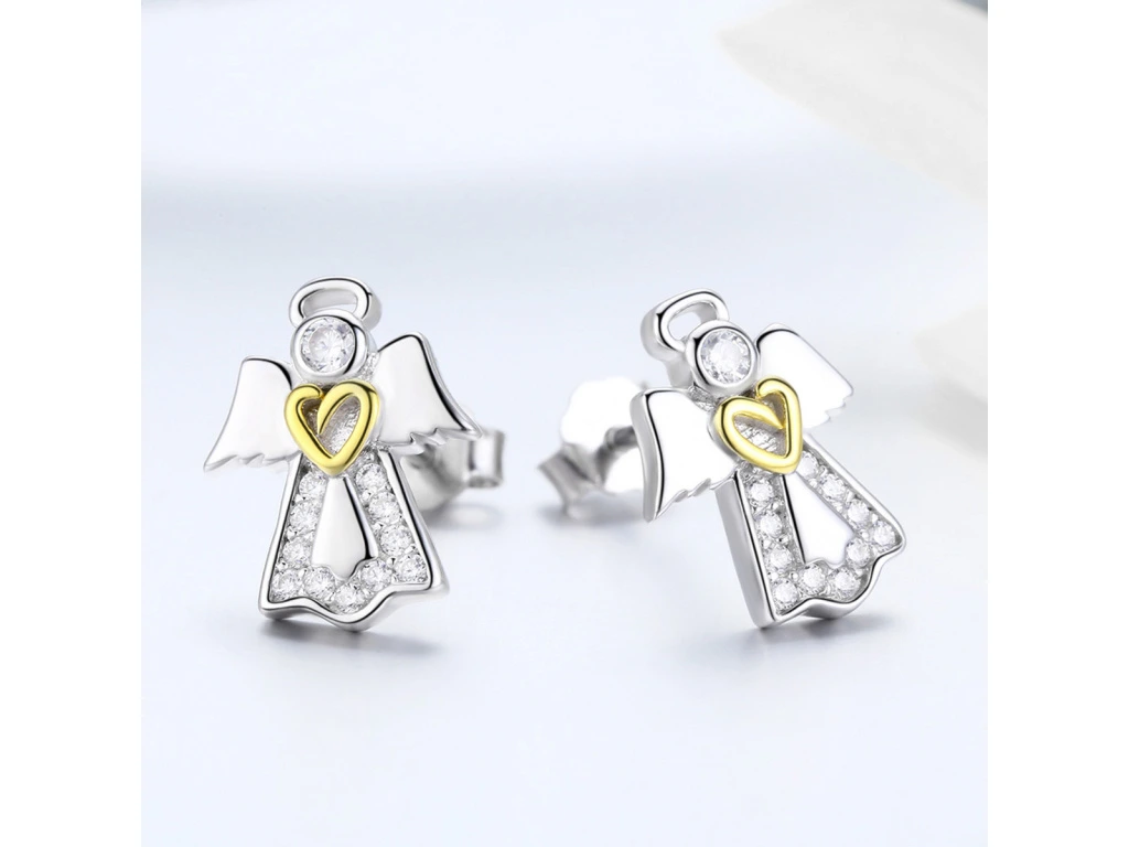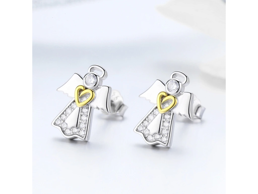STŘÍBRNÉ NÁUŠNICE ANDĚL SE ZLATÝM SRDCEM