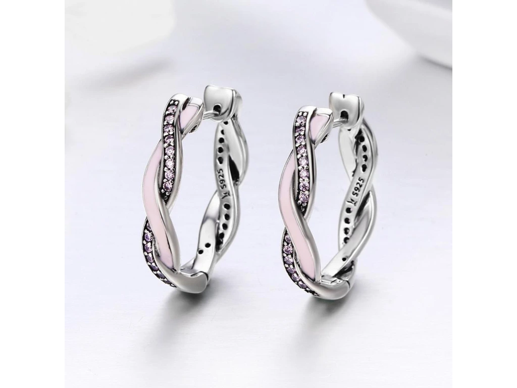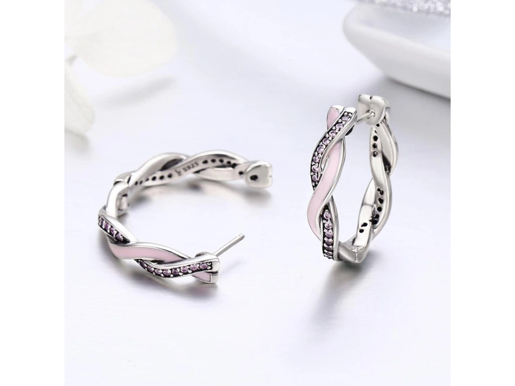 STŘÍBRNÉ OVÁLNÉ NÁUŠNICE RŮŽOVÝ SEN