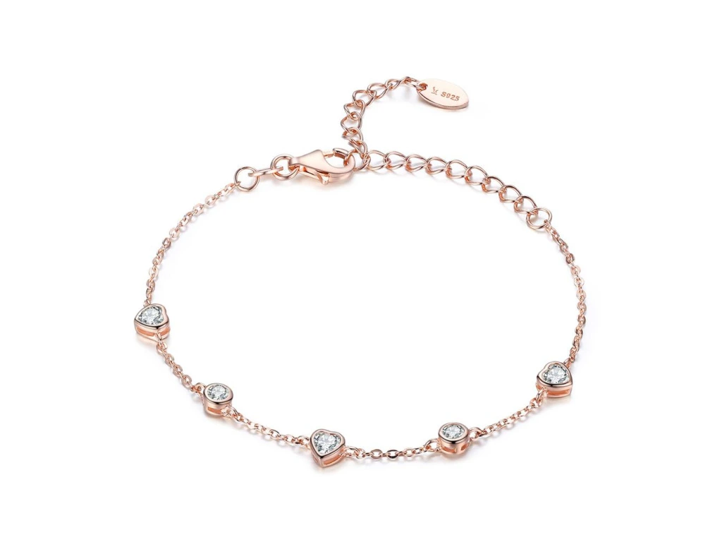 3442 ROSE srdíčkový stříbrný náramek Ag 925; ≤1,8 g.