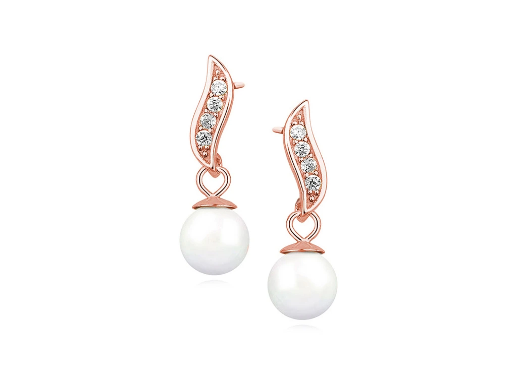 STŘÍBRNÉ PERLOVÉ NÁUŠNICE ROSE SE ZIRKONY