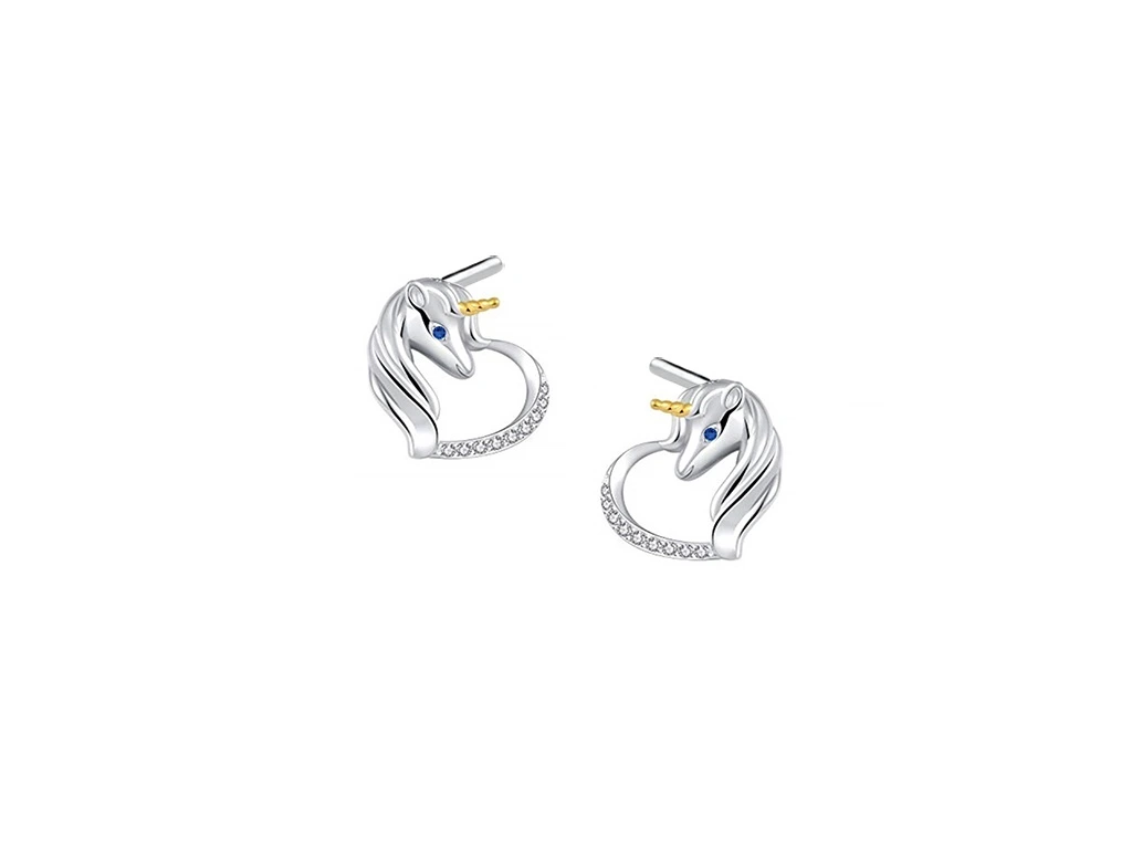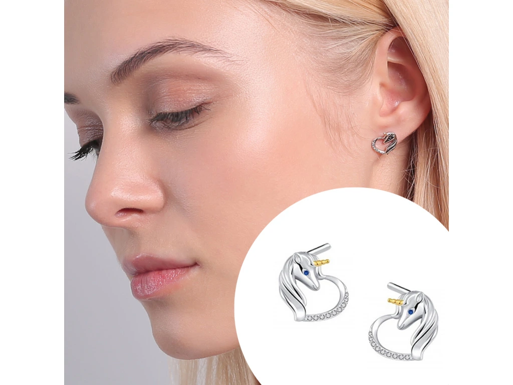 3747 Stříbrné náušnice JEDNOROŽEC V SRDCI Ag 925; ≤2,1 g.