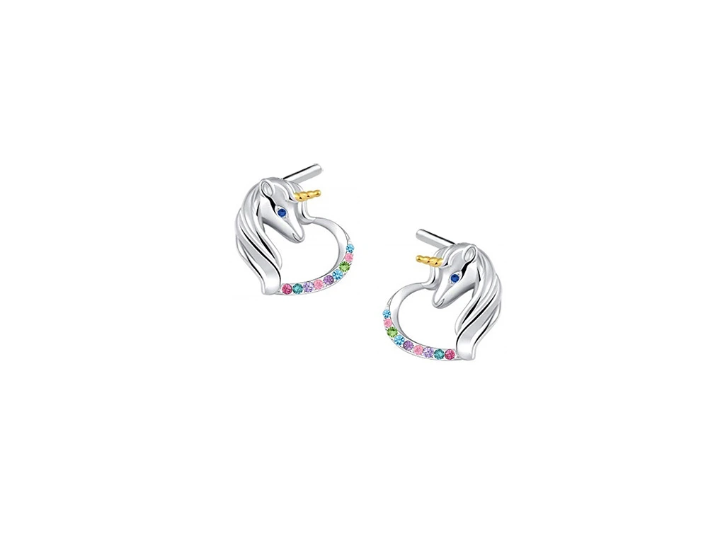 3753 Stříbrné náušnice JEDNOROŽEC V SRDCI Ag 925; ≤2,1 g.