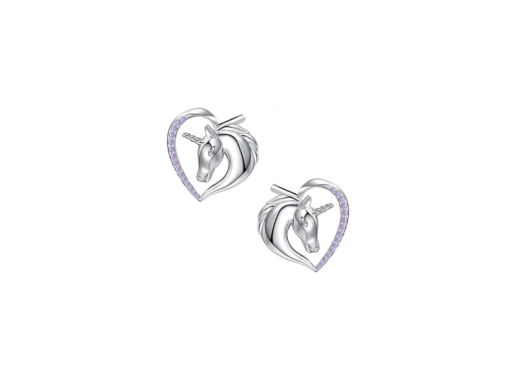 3761 Stříbrné náušnice JEDNOROŽEC V SRDCI Ag 925; ≤1,9 g.