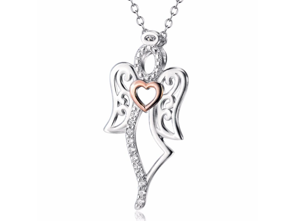 - Anděl s růžově zlaceným srdíčkem a ozdobený čirými zirkony.