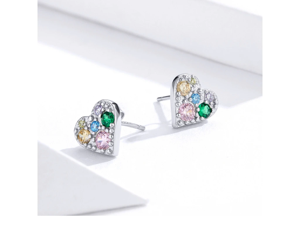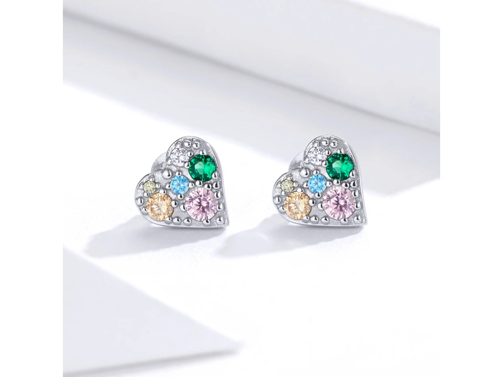 STŘÍBRNÉ NÁUŠNICE TŘPYTIVÉ BAREVNÉ SRDCE
