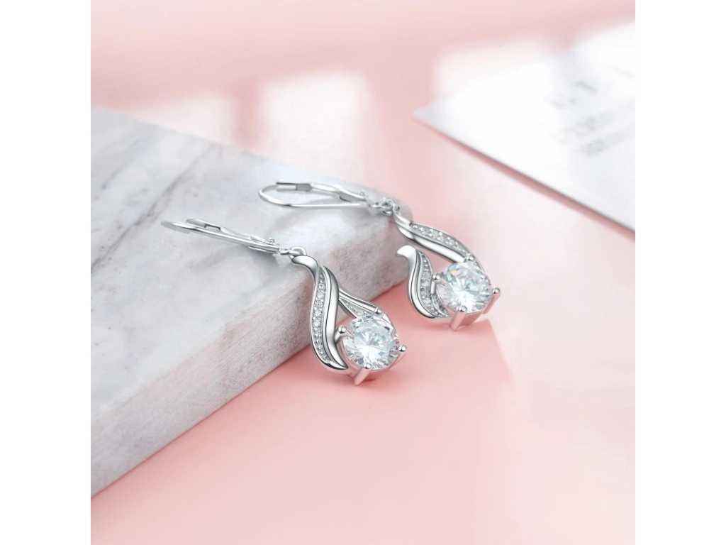 - Nádherné stříbrné náušnice ve tvaru kapky s čirým zirkonem.