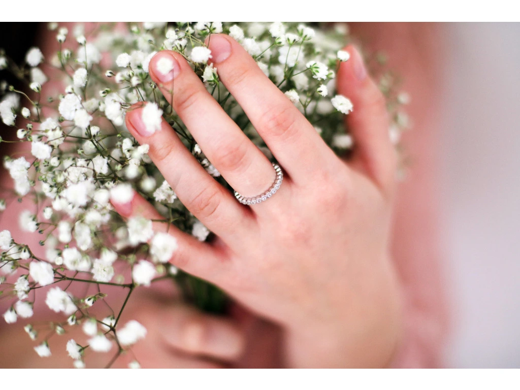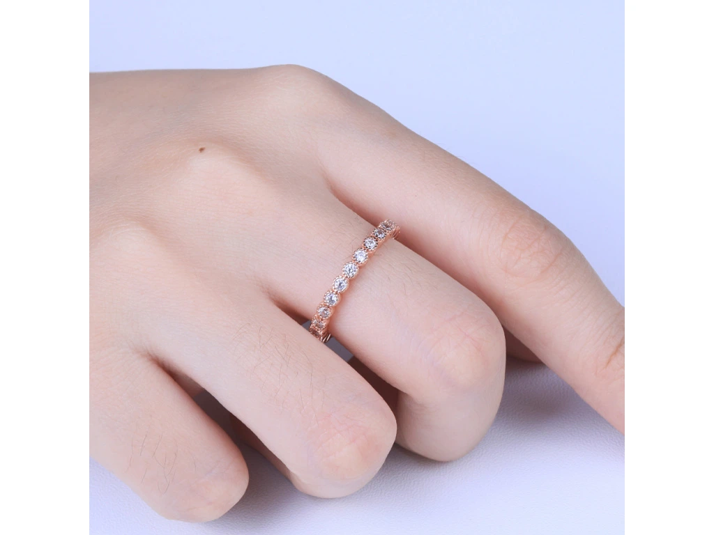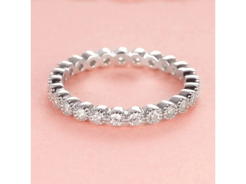 Čiré zirkony po celém obvodu prstýnku.