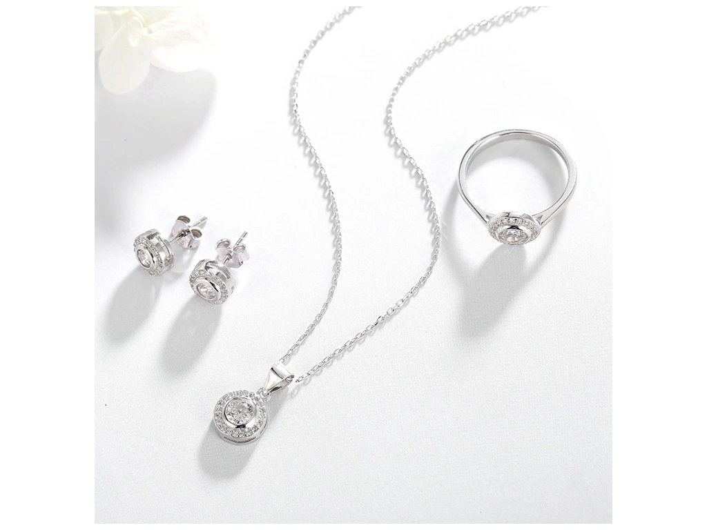 Sada šperků se skládá z náušnic, prstýnku a přívěsku. Bez řetízku.