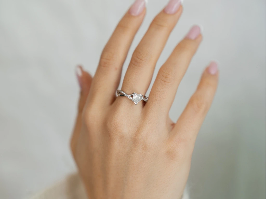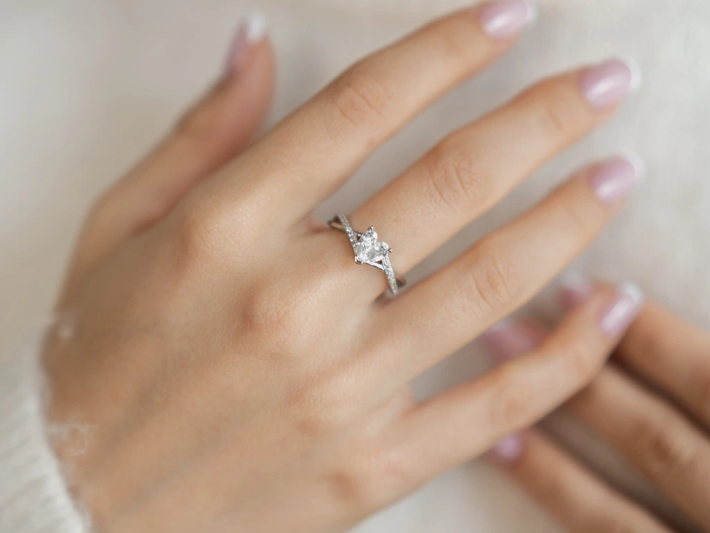 Vsazený čirý zirkon ve tvaru srdce.