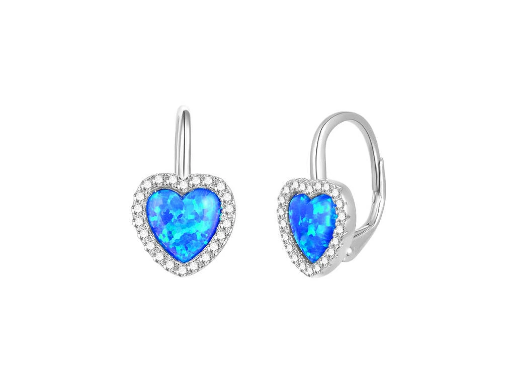 Krásné stříbrné náušnice s opálem ve tvaru srdíčka.