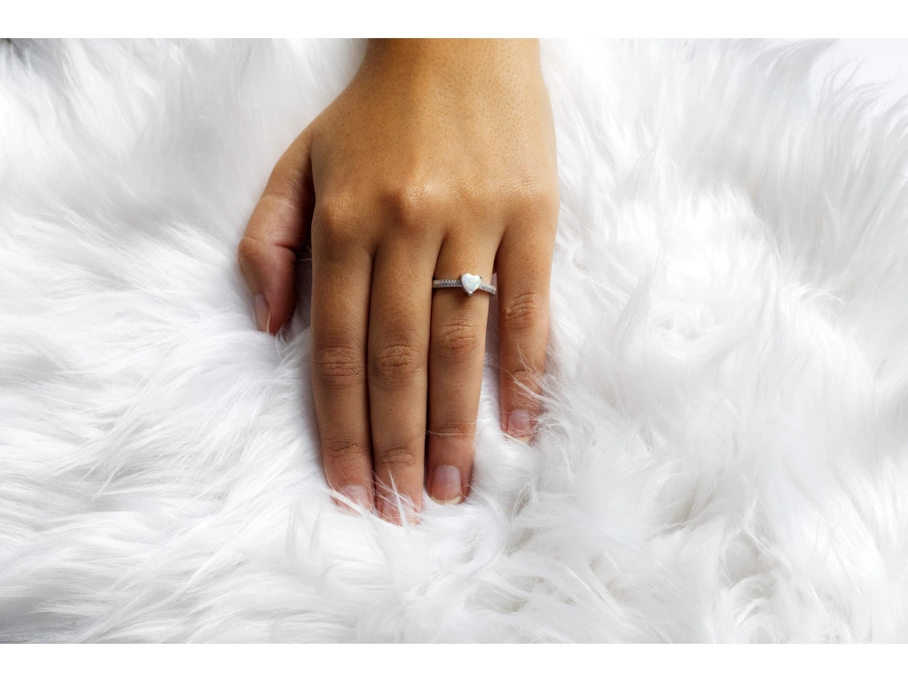 STŘÍBRNÝ PRSTEN BÍLÉ OPÁLOVÉ SRDCE