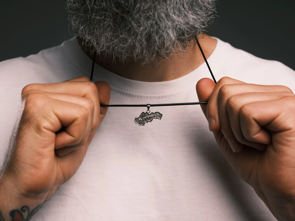 Přívěsek mapa SLOVENSKO symbolizuje národní hrdost a vztah Slováků k vlasti.