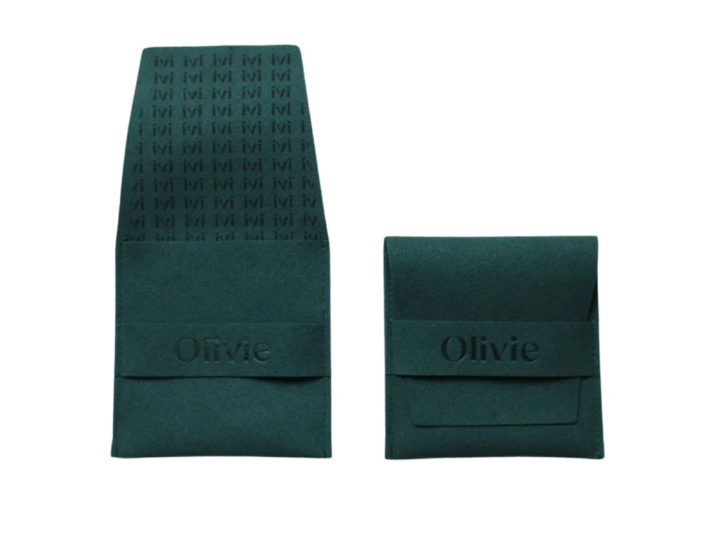 Pytlík s logem OLIVIE je vhodný pro uložení šperků při cestování.