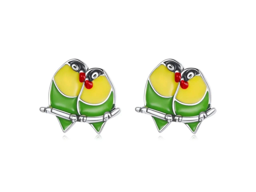 Puzetové stříbrné náušnice s motivem ptáčků.