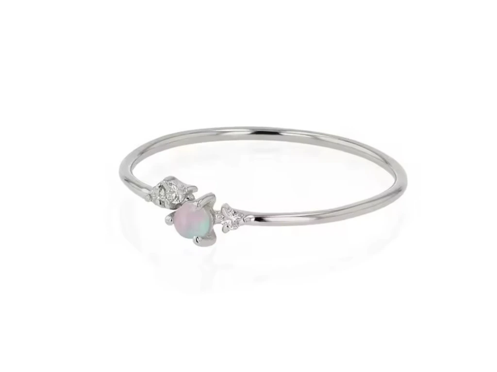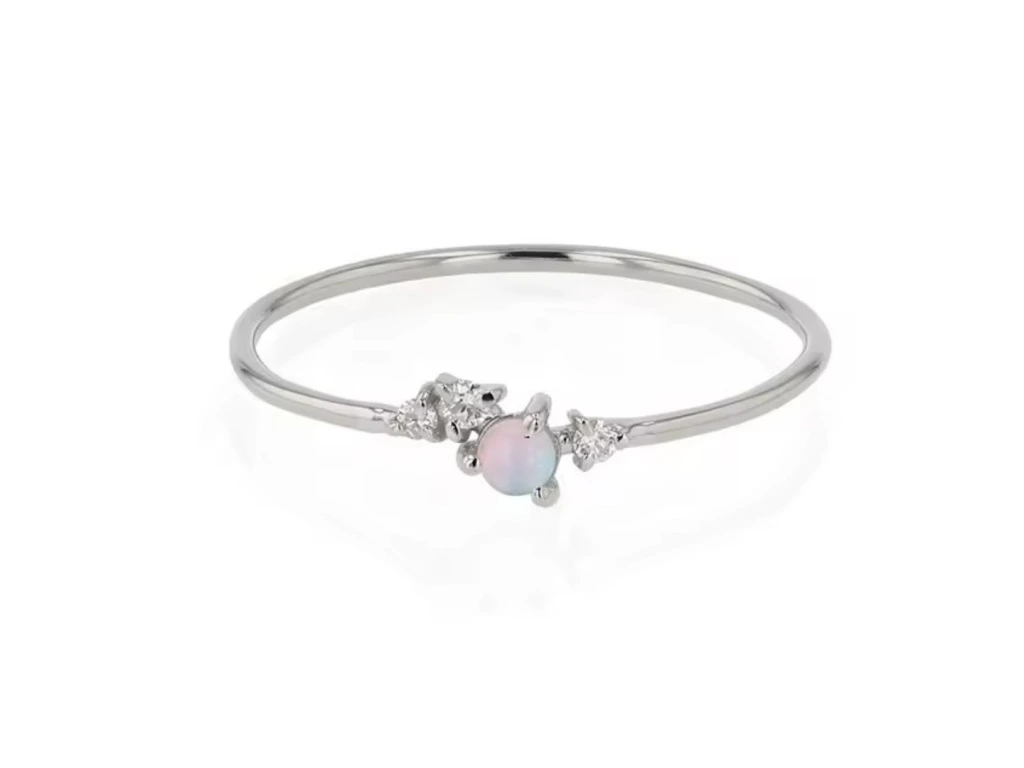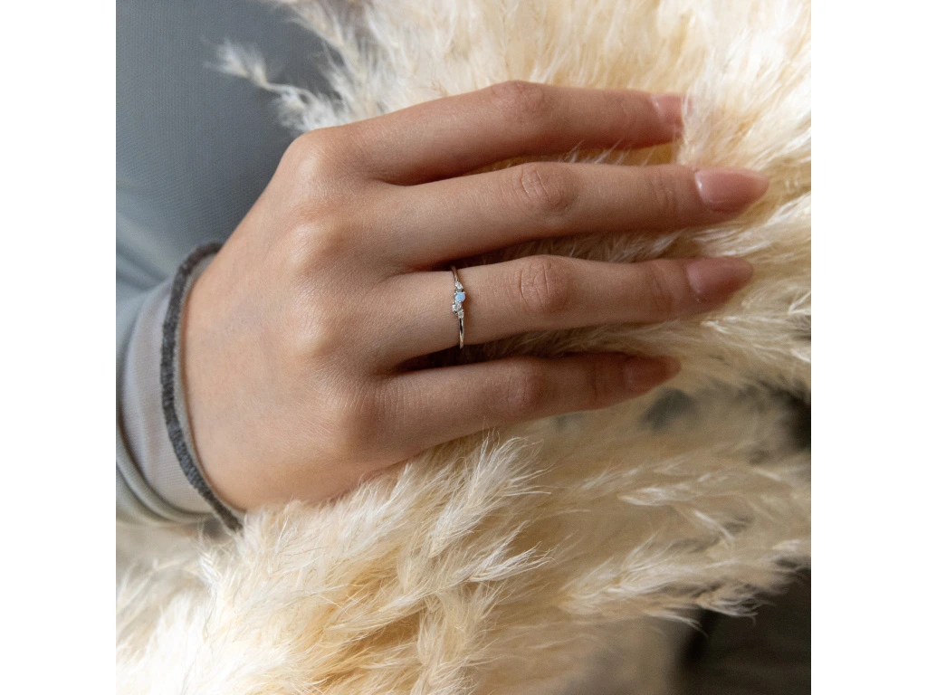 Něžný prstýnek s opálem a vsazenými zirkony.