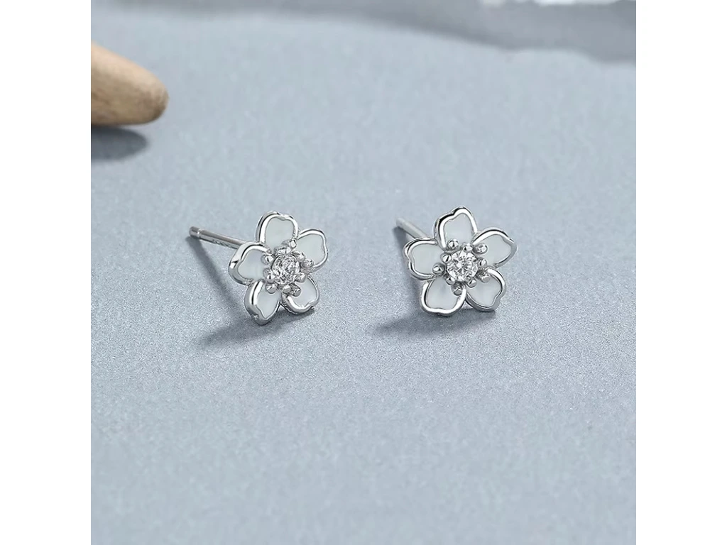 STŘÍBRNÉ NÁUŠNICE BÍLÝ KVÍTEK