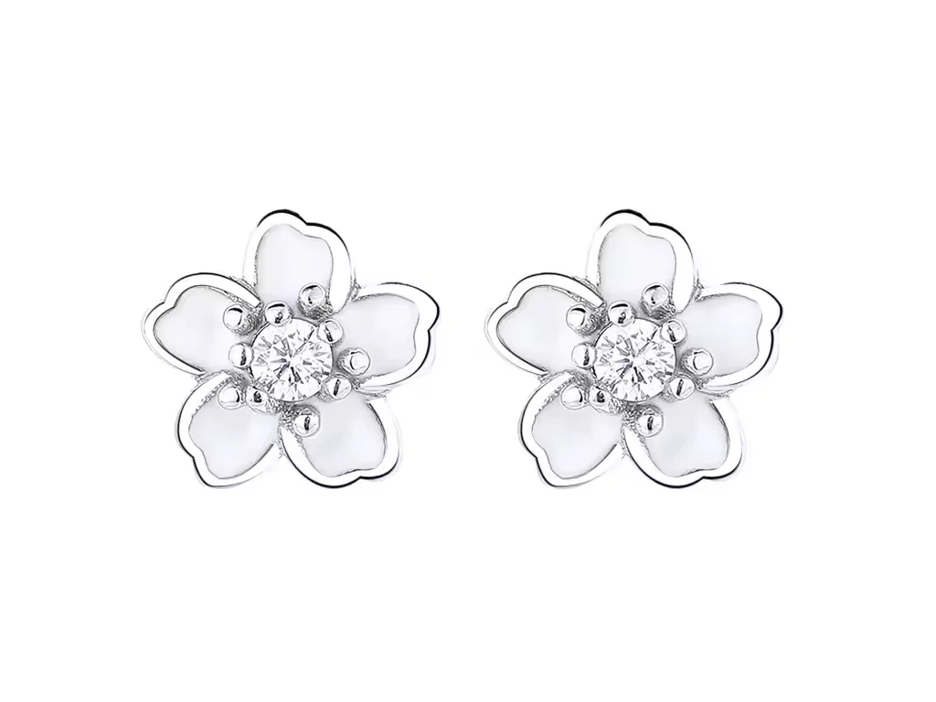 9378 Stříbrné náušnice BÍLÝ KVÍTEK Ag 925; ≤0,8 g.