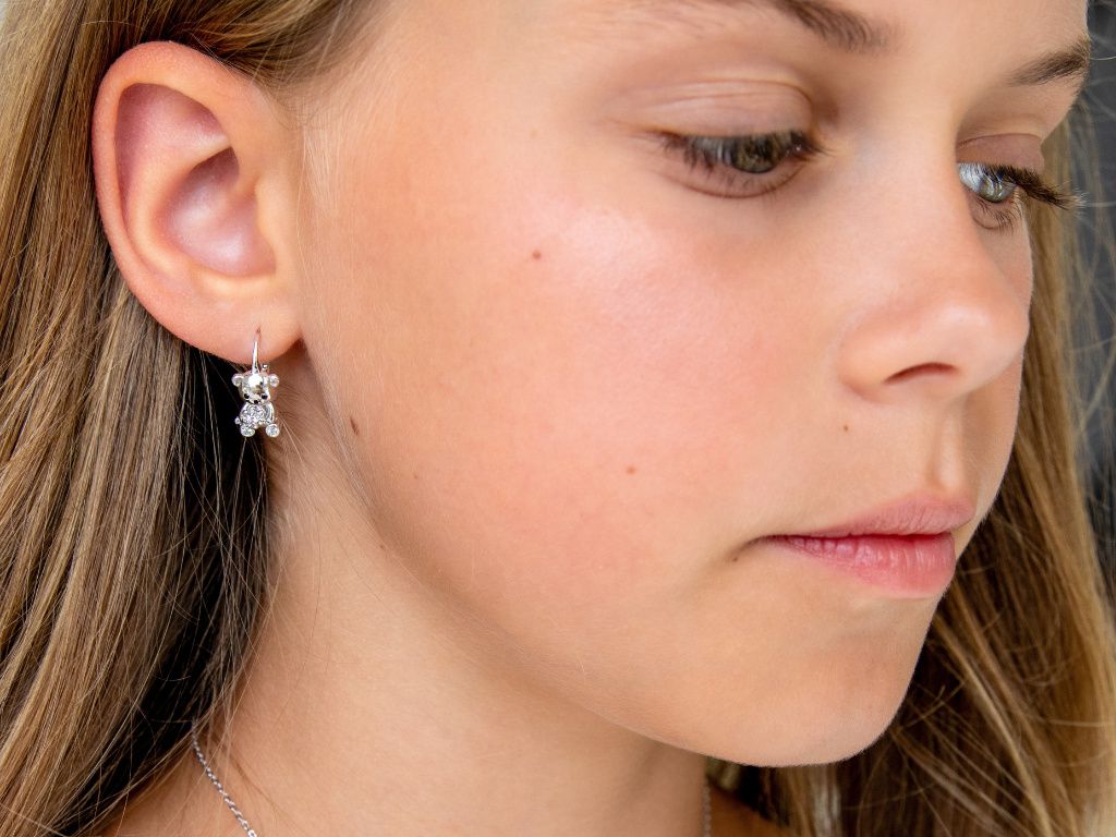 EZÜST GYERMEK FÜLBEVALÓ KICSI MACKÓ