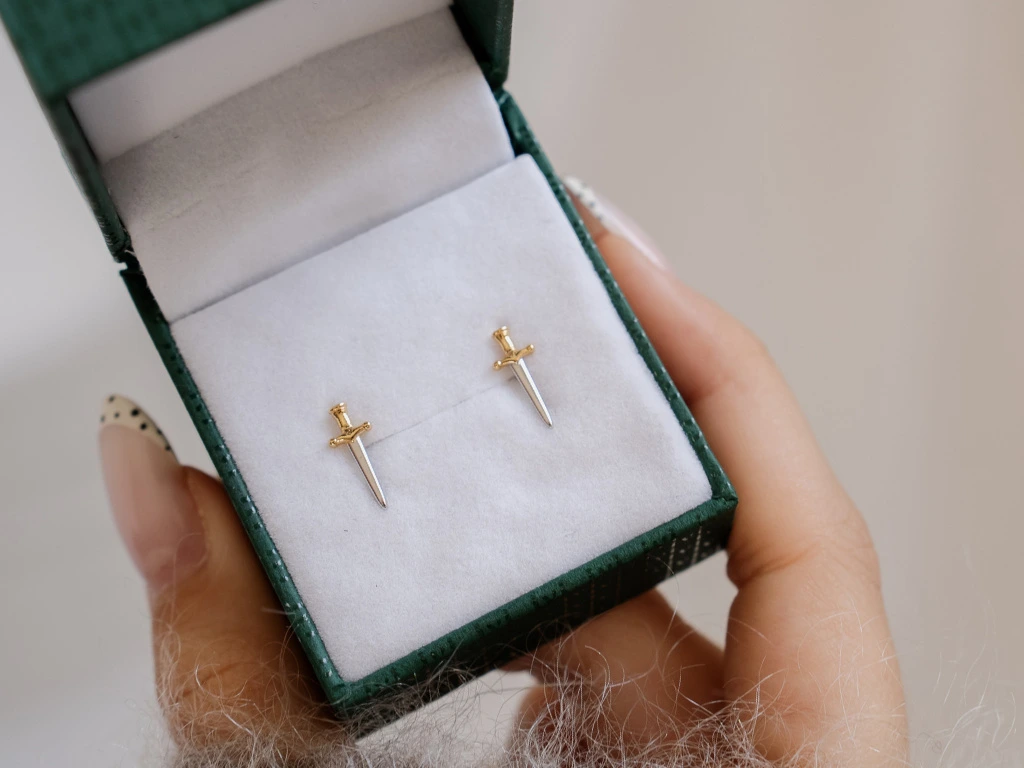 9796 Stříbrné náušnice MEČ Ag 925; ≤0,5 g.