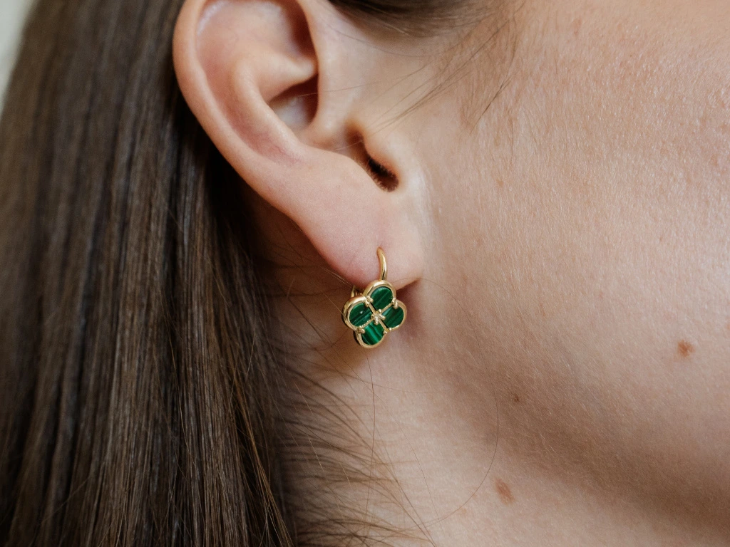 Pozlacené stříbrné náušnice s malachitem TALIS