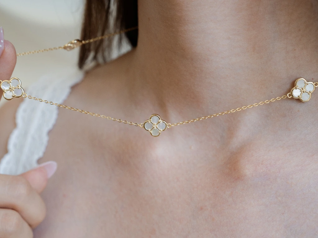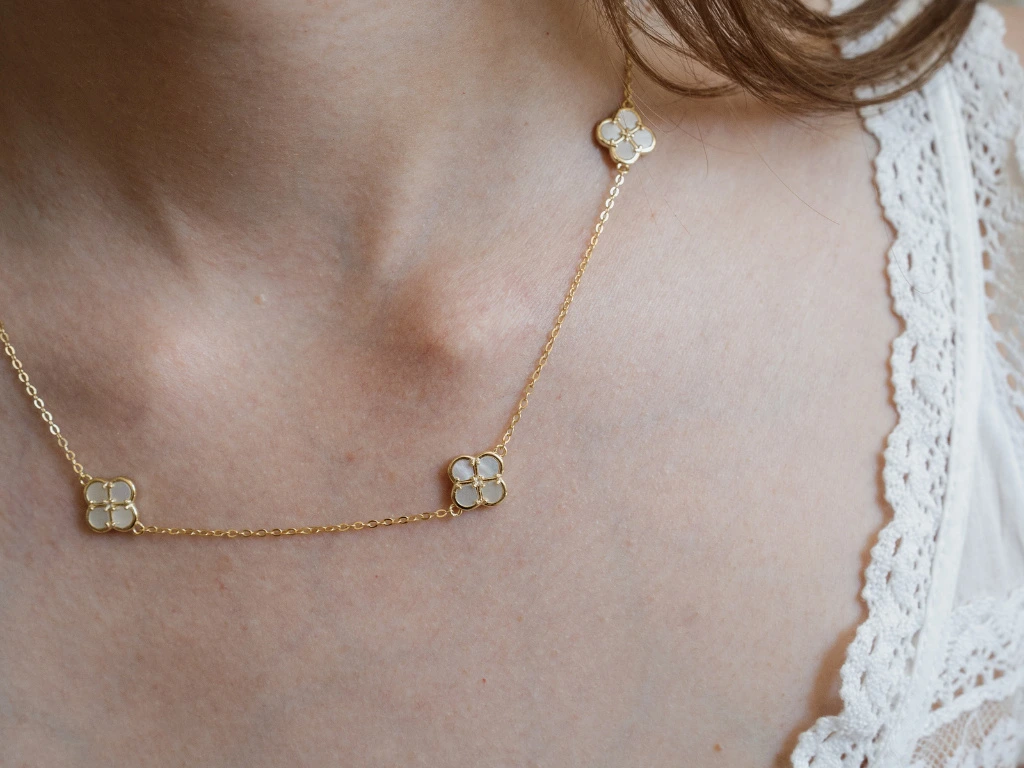 - Náhrdelník s trojitým motivem květu ze stříbra 925/1000 s pozlaceným povrchem.